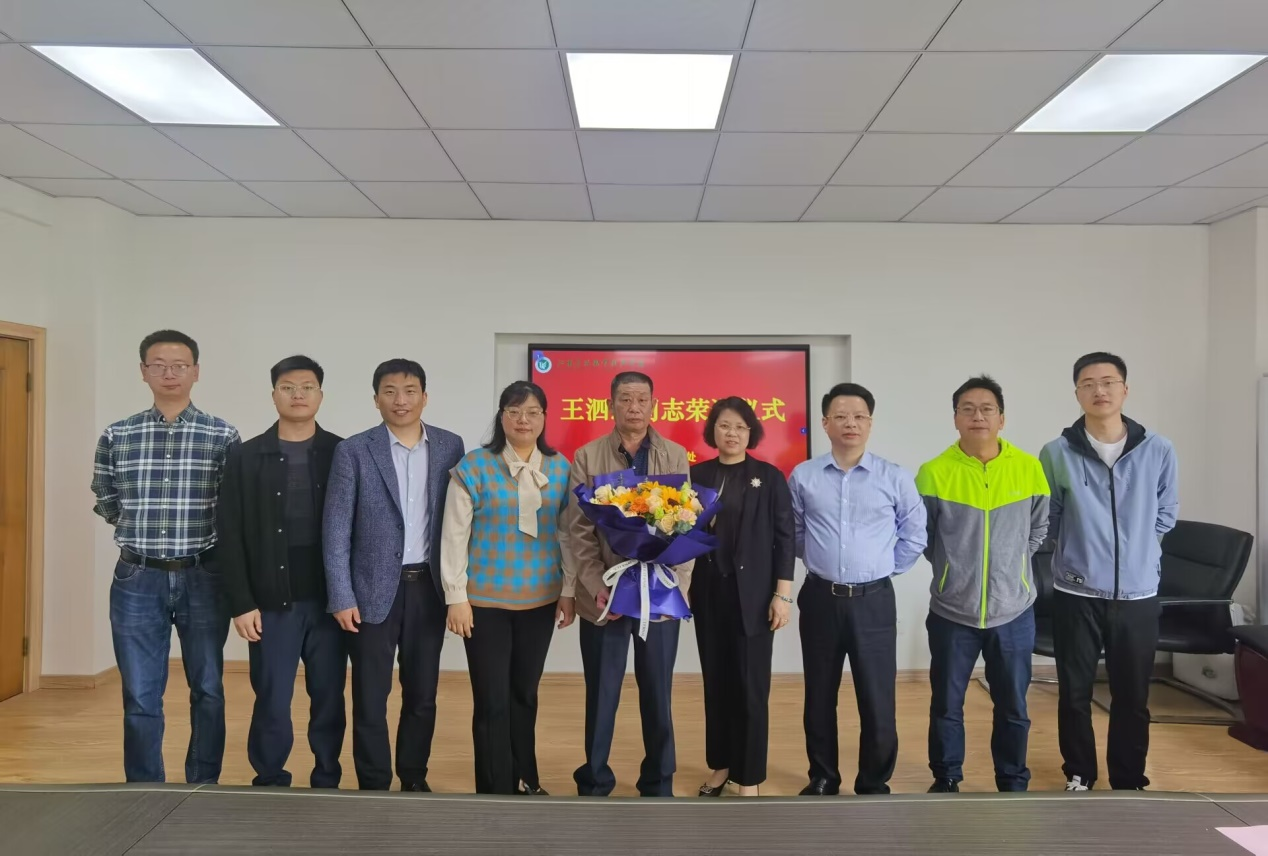 最后,郭俊处长代表后勤基建处向王泗志老师的光荣退休表示祝贺献花,并合影留念。