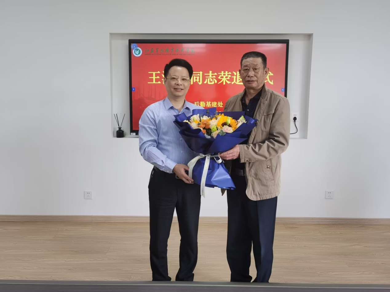 为了进一步彰显尊师重教情怀,弘扬和谐校风,凝聚奋进力量,4月19日上午,后勤基建处以一场温馨而特别的仪式,欢送王泗志老师光荣退休。荣休仪式由后勤基建处处长郭俊主持,学院离退休办主任杨春梅、人事处副处长王慧媛及后勤基建处部分教师代表参加仪式。