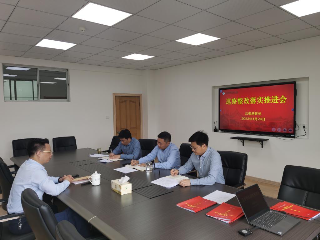 为扎实推进学院巡察反馈意见整改落实工作,4月24日下午,后勤基建处召开巡察整改落实推进会,后勤班子成员和各科室负责人参加会议。会议由后勤基建处处长郭俊主持。