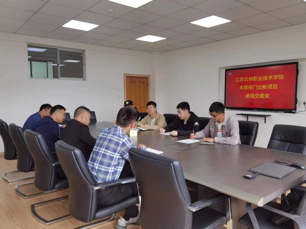 2023年5月10日上午,在后勤基建处会议室召开本部校门出新项目进场交底会,会议由万孝军副处长主持,建设单位、施工单位、监理单位负责人及相关技术人员参加。