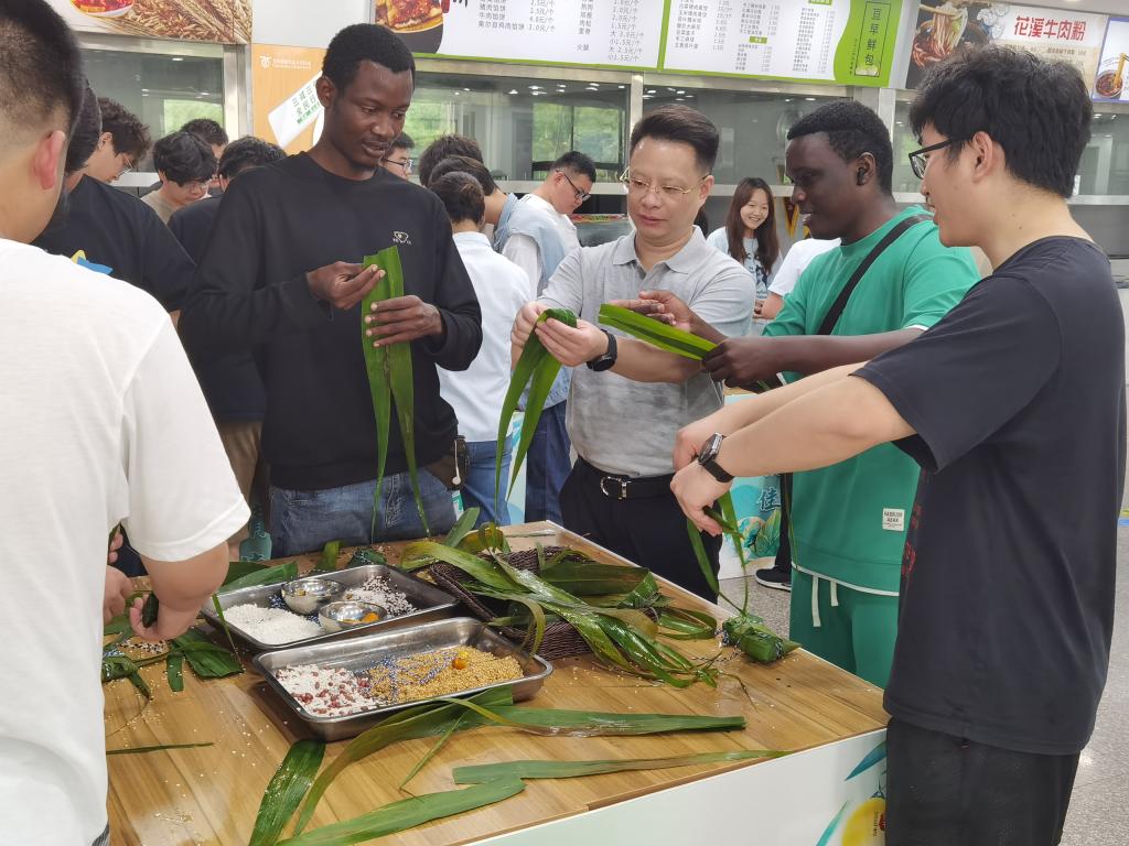 一枚糯米粽,凝结华夏情。活动结束,同学们将自己亲手包的粽子送给老师、学校保安、宿管阿姨等,感谢他们节假日坚守岗位,让这个端午格外温暖。此次主题实践活动,通过“沉浸式”育人,既深入挖掘了中华传统节日的文化内涵,又丰富了中外学生的精神文化生活,让同学们感悟了中国精神、增强了文化自信,营造了温暖、和谐的节日氛围。