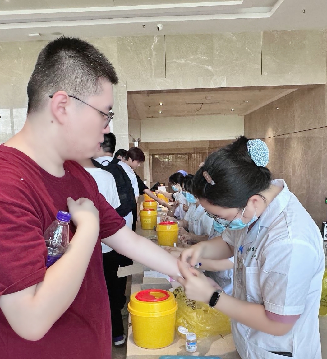 筛查现场呈现出井然有序的和谐画卷:志愿者们身着统一标识,像校园里的导航员般引导新生分流排队;医护人员以三人为一组形成流水线,从信息核对到皮肤消毒,再到精准注射,每个环节都衔接得恰到好处。特别设置的爱心通道为行动不便的学生提供优先服务。这种科学规划下的高效运转,让新生们深刻感受到学校管理的专业与细致。