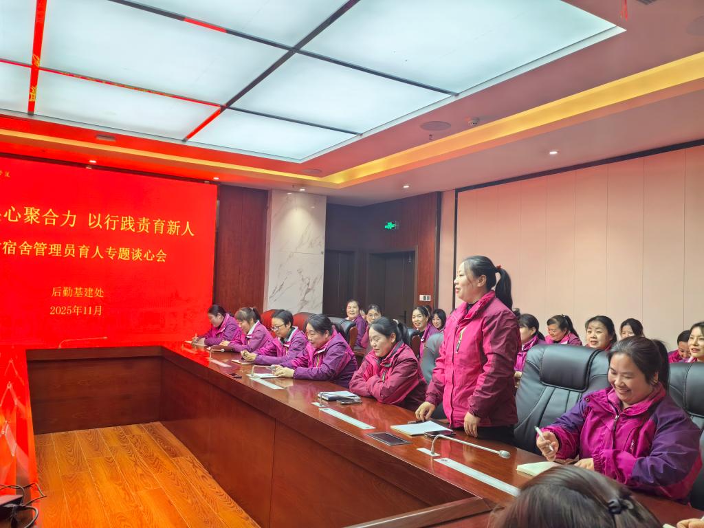为持续提升宿舍管理服务质效,凝聚全员育人合力,畅通工作交流渠道,11月 26 日下午,后勤基建处举办宿舍管理员座谈交流会。